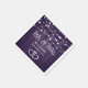 Decorate your purple rustic wedding party with these romantic Mr. and Mrs. wedding paper napkins featuring intertwined hearts against a rustic wood background adorned with elegant floral lace and string lights.