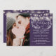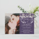 A purple wedding invitation featuring pretty string lights and a delicate hand-drawn rustic floral garland of botanical leaf foliage with stylish script typography. Personalise with all your special wedding day information on the reverse including your RSVP, accommodation, and additional details. Designed by Thisisnotme©
