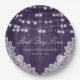 Purple String Lights Rustic Wood Lace Wedding Paper Plate