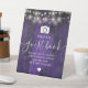 Purple String Lights Rustic Wood Photo Guest Book Pedestal Sign