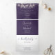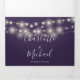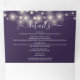 All in one purple tri-fold wedding invitation featuring pretty string lights and elegant typography. The invitation includes your celebration guest information details and a detachable RSVP card. Designed by Thisisnotme©