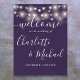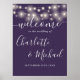 Featuring pretty string lights and signature style names, this elegant purple welcome sign can be personalised with your information in chic lettering. Designed by Thisisnotme©