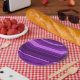 Purple stripes paper plate