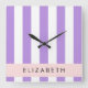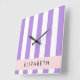 Purple Stripes, Striped Pattern, Lines, Your Name Square Wall Clock