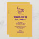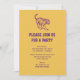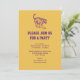 A generic party invitation. An illustration of an african tiger wild cat with purple stripes and a yellow body.