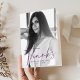Simple and modern graduation thank you card featuring the graduate's vertical photo with "Thanks" in a stylish purple script overlay. Personalize the front of the photo graduation thank you card by adding the graduate's name and graduation year. The inside of the folded thank you card displays a hand-drawn purple and white pattern on the left with space for your typed or handwritten message on the right.