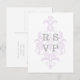 Simple with modern elegance describes this sophisticated Subtle Damask Wedding Response Postcard with a light lavender damask flourish background. This classic RSVP is perfect for a traditional wedding and can be easily customised with your wedding details. For more customisation options, click on the Customise It button.