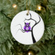Purple Sugar Skull Owl in Tree Ornament