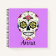 Personalised notebook or journal featuring a hand drawn sugar skull design. Name, font and background colour can be personalised.
