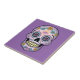Purple Dia de los Muertos sugar skull is so colourful with flowers, heart and diamond.