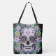 Purple Sugar Skull with Flowers Tote Bag