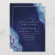 Purple Teal Agate Geode Gemstone Wedding Invitation. This elegant modern trendy abstract design features sparkly purple and teal glitter agate gemstone lines against a purplish navy blue watercolor background.