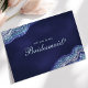 Purple Teal Agate Geode Will You Be My Bridesmaid Invitation. This elegant modern trendy abstract design features sparkly purple and teal glitter agate gemstone lines against a purplish navy blue watercolor background.