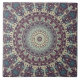 This intricate mandala design features a rich interplay of purple, teal, and cream tones arranged in mesmerising symmetry. Layers of ornate floral and geometric motifs ripple outward from the centre, forming a kaleidoscopic structure that draws the eye in with its balance and rhythm. The muted yet striking colour palette gives the design a vintage elegance, while the fine details and repeating circular arrangement add depth and harmony. With its ornamental flow and timeless balance, this piece radiates both sophistication and meditative calm.