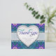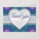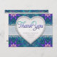 Customisable Thank You Postcard : Gorgeous geometric tribal pattern in teal, aqua and energising purple on white heart shape and silver decorative trims~ personalise it and add text by clicking the orange "Customise It" button.