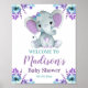 Purple Teal Elephant Welcome Sign, Girl Shower Poster