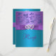 This pretty purple and turquoise blue floral wedding reply card has a purple PRINTED ribbon and a pair of PRINTED diamond jewels and FAUX glitter joined hearts on it that matches the wedding invitation shown below. The paper choice is customisable. If you require any other matching items, please email niteowlstudio@gmail.com.
