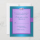Purple, Teal Floral Hearts Monogram Wedding RSVP Card