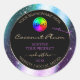 The design features a bright shimmering purple teal glitter frame with tiny glitzy stars on a plain black background.