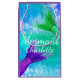 Beautifully coloured mermaid hues mermaid themed gift bag. This bag has a bright cyan, blue, and green mermaid scales background, two mermaid tails in purple and green, and the word "mermaid" in script plus a custom name in script. This gift bag is great for a mermaid themed birthday party or baby shower!