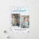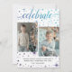 Our season's greetings 2-photo card features whimsical script typography for "celebrate" and stars and falling snow in pretty purple and teal. Easily personalise with your photos and family name. #SeasonsGreetings #PhotoCards