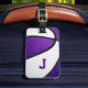 purple team colours monogrammed basketball luggage tag