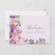 Purple Thank You Card. Featuring elegant calligraphy script and exquisite hand-painted watercolor artwork in soft lavender, blush pink, deep burgundy, and vibrant purple, adorned with delicate wildflowers, roses, and elegant greenery. Perfect for spring, summer, and fall bridal showers, each item in this collection whispers of love, enchantment, and timeless romance setting the stage for your unforgettable celebration. Let the beauty of nature and the charm of vintage elegance adorn your special day with our captivating collection.