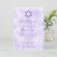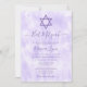 This modern purple tie dye Bat Mitzvah invitation features a trendy calligraphy script font and Star of David.