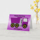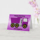 Birthday card truck design. You can customise this children's birthday card with their name and any other details then have it printed or download it. Should you require any help with customising then contact us through the link on this page. Purple lorry design personalised birthday card that you can have printed or downloaded