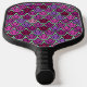 This pickleball paddle has an art deco design of tulips from pentagons and trapezoids in different shades of purple.
