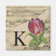 Botanical style purple and yellow tulip is partnered with vintage sheet music in a classic Victorian style. This decoupage inspired design is personalised with the monogram "K" over an aged parchment background.
