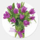 Beautiful purple tulips in a clear glass vase ... customisable with your text.  Perfect for any occcasion.