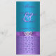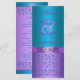 This purple and teal blue floral wedding menu card has a purple PRINTED RIBBON and BOW with a pair of PRINTED FAUX glitter and diamond joined hearts on it. If you require any assistance customising this with your details, or if you need any other matching items, please email niteowlstudio@gmail.com.