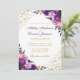 Watercolor Purple Ultra Violet Floral Gold Glitter Wedding Invitation Card