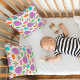 I LOVE this pillow! It sleeps with me every night; and yes, it gets and gives lots of hugs. I know I said it would be good for a Baby Shower up there, but it's good for little old ladies too! But I can truly see a child growing up with it and having a friend for life. It would get passed down from generation to generation. Truly a classic! This pillow is HUGE! I took a picture of it propped up in front of four queen-size pillows, and it covered them all. The artwork was even more beautiful than the photo indicates, both front and back. I was also surprised to find that these pillows are made by single mothers living in poverty, under the auspices of AMERICAN MOJO: Helping America Gets Its Mojo Back. That delighted me and made me love the pillow even more.