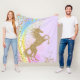 Unicorn blanket with beautiful gold unicorn on a pastel lavender purple rainbow background. This pretty unicorn blanket is easily customised by simply adding the text of your choice in the font style you prefer. You can also change the background colour on this adorable unicorn blanket. This is a printed design with no real glitter, foil, etc.
