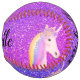 Designed with pretty white unicorns and they have rainbow hair and flowers on the top of head. The background is bright purple faux glitter sparkles and the ball is personalised with child's name in black calligraphy script lettering on the front and back. Makes a great gift idea for girl who loves to play ball and loves uniçorns!