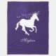 Keep warm with a Purple Unicorn Fleece Blanket you can personalise. Fleece blanket design features a colourful starry background and a unicorn adorned with stars with a place to personalise with your name. Additional items available with this design as well. Please contact me directly for assistance with personalisation.
