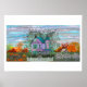 Purple Victorian House Wagon Pumpkins Fall Trees Poster