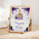Travel themed "Passport Photos" sign featuring elegant watercolor purple flowers, vintage suitcases and a pretty lavender globe