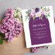 A violet, lavender watercolored background and an arch frame. Decorated with violet and purple watercolored flowers and greenery. Personalise and add your name and party details.