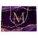 Purple Violet Gold Glitter Agate Geode Monogram Large Gift Bag