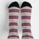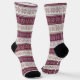These pretty faux knit Holiday socks have a pattern of lavender retro style snowflakes in varying sizes. The snowflakes are placed on alternating dark violet and white wide stripes, with thin stripes separating the segments. Pretty for the Christmas season or all winter long! *Please note--the pattern is printed on the fabric, and not actually woven into it.