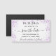 A trendy wedding Save the Date magnet. A chic white background. Decorated with purple, lavender coloured faux glitter sparkles. Personalise and add a date, place and your names. Save the Date is written with a modern hand lettered style script with swashes.