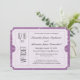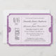 Ticket Invitations, a unique and stylish way to celebrate your special wedding day. Elegant design with purple lilac lavender swirl background and white faux ticket design. Customise online with your info