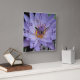 This custom wall clock has a purple water lily blossom with a honeybee on it.