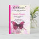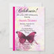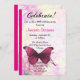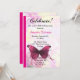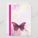 An fancy and feminine adult birthday invitation. A beautiful painted purple butterfly which really captivates your attention. Set upon a delicate background which has a unique and creative watercolor texture with romantic pink and yellow faded flowers. With an antique logo faintly visible at the bottom to give it some vintage flair