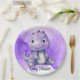 Purple Watercolor Cute Dinosaur Girl Baby Shower Paper Plate