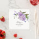 Rustic floral theme bridal shower paper napkin featuring watercolor illustration of purple peony with greenery.