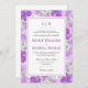 Elegant watercolor floral wedding invitation design, featuring purple flowers with grey / green leaves. A modern invite perfect for a garden wedding.